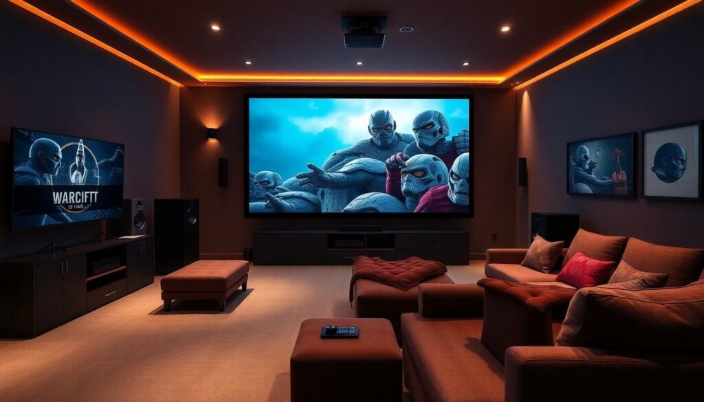 Proper lighting enhances the cinematic experience in a home theater room. Thoughtful selection of ambient lighting and screen brightness ensures comfort and visibility.